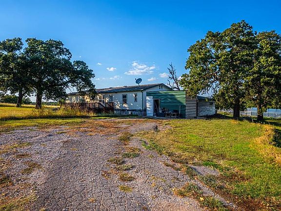 Approx. 41.48 acres. Property includes a 2008 Solitaire manufactured home on a permanent foundation (per FHA specs) with crown molding, a corner fireplace, 4 bedrooms, 2.5 baths, and approx. 2,016 sq ft. The primary bath features a garden tub and large shower. Two large decks, with a fire pit off the front deck. Storm cellar just outside the dining room’s double French doors. The 2-car garage has been converted to a shop. Three high-quality warehouses built by the current owner. Pasture is ideal for horses. Three fenced areas: house + 8 acres, 14 acres, and 20.48 acres (smooth, barbed, and/or hot-wire fencing). Kickapoo Creek runs through the property; a bridge provides access to all acreage. Productive soil with Bermuda/blue-stem grassland, producing native pecan trees, three ponds, and an electric RV hookup. Buyers may have the option of Davis or Wynnewood Schools (verify). Minutes to I-35 and centrally located between OKC and Dallas. Don’t miss out!