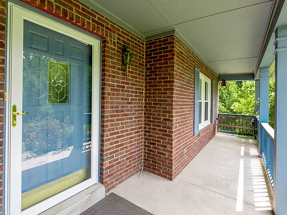 A covered front porch greets you and introduces you to main floor living, with a thoughtful layout complete with newer carpet, gorgeous hardwood floors, wood-burning fireplace with brick surround, powder room, first floor laundry, first floor primary suite with walk-in closet, spacious kitchen, as well as an adjoining dining room with walkout to paver patio that overlooks the tranquil green space.