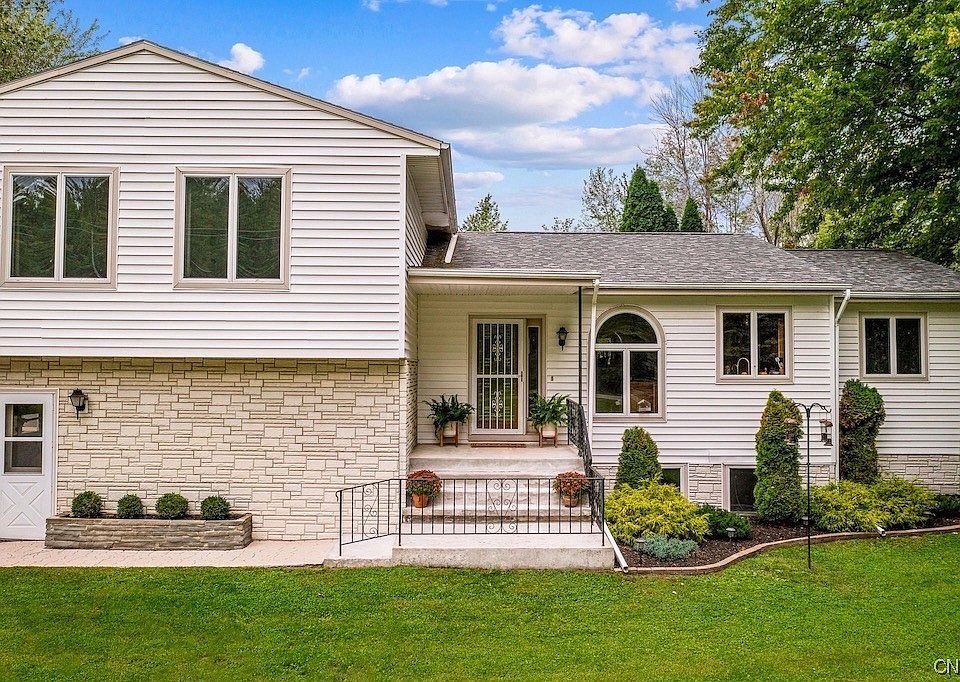 Nestled in a serene woodland setting, this exquisite home radiates elegance and warmth with its meticulously designed features. Bathed in abundant natural light, its generous open layout promises both comfort and style. Ample maple cabinets, granite counters, stainless appliances, and recessed lighting. Includes a 4-phase water filtration system. The dining room French doors transition into a 1.5 story sunroom, offering views of beautiful sunsets. The wrap-around deck oversees a backyard paradise made for sun-soaked swims, weekend BBQs, and late-night bonfires. It further indulges with a 16’x25’ meticulously curated organic garden and a spacious 16’x32’ above-ground pool. In the upper level, find three bedrooms, a full bath, and a spacious hallway closet for added convenience. The luxurious master bedroom is an intimate retreat, highlighted by a bespoke pallet wall, dual spacious closets, and a generous space perfect for a home office setup. The finished basement greets you with a stone gas fireplace, a generous walk-in closet for storage and a distinctive metal spiral staircase. Additionally: Forced/Central Air and a brand-new water heater. Offers reviewed on 7/25/23 @ 5 PM