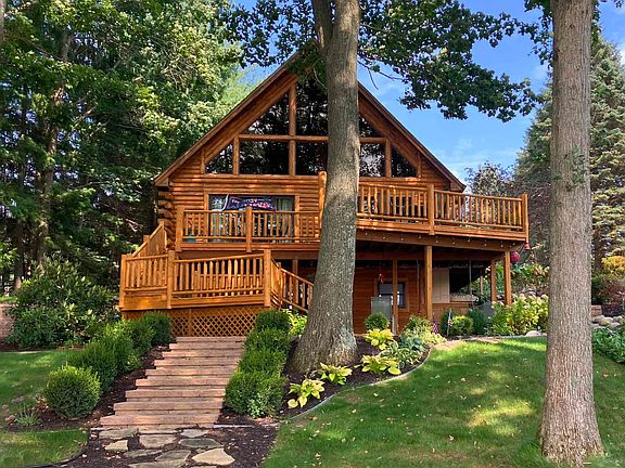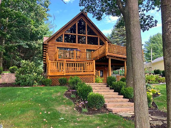 Tucked away just five miles east of Portage Lake, this might just be the best-kept secret in the area. A private cedar log home with over 2,500 square feet of space, set on more than three wooded acres, offering incredible views of Chief Lake. This peaceful, all-sports lake is perfect for boating, swimming, fishing, canoeing, kayaking, or just soaking in the quiet beauty. With 75 feet of private lake frontage, there's plenty of room to unwind and take it all in. Step outside and you'll find even more to love—an 18x36 heated in-ground pool for warm summer days and an oversized pole barn with plenty of space for toys, tools, and storage. A spacious attached two-car garage adds even more convenience. Inside, the craftsmanship shines—four sets of sliding doors open onto a huge deck with sweeping lake views. The great room features a wood stove, perfect for those chilly winter evenings after a day of skiing, snowshoeing, or exploring the trails. Whether it’s morning coffee by the water or evenings by the fire, this home was built for making the most of every season. Close to Lake Michigan, Arcadia Bluffs, Crystal Mountain, and some of the best trout streams around. If you've been looking for that perfect lakefront retreat, this one is worth seeing.