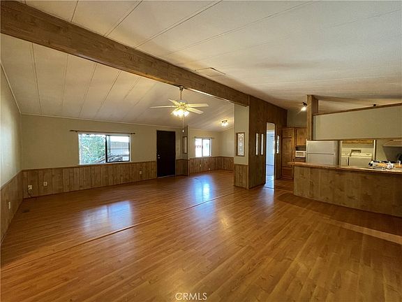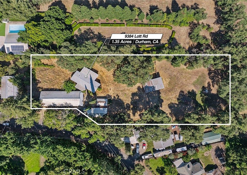 Directly across from Durham Community Park, this expansive 1.37-acre property offers all usable land and multiple outbuildings for endless possibilities! The Manufactured home features 3 bedrooms and 2 bathrooms with approximately 1,344 square feet of living space, plus a large, enclosed back patio that provides an extra additional living area. Walking into the home you will find a spacious living room with sliding doors out to the enclosed patio. The kitchen has many cabinets and will be easy to prep meals with all the counter space, along with a breakfast bar which opens to the family room! Primary suite has all the room you would expect with spacious bathroom. The split floor plan accommodates the 2 guest rooms and full bath separate from the primary suite. The property includes a one car detached garage, a sizable shop ideal for projects with ample storage and 3 garage doors. There is an old barn that adds character to the back of the lot. With flat, functional acreage and unbeatable proximity to the park, this location is full of potential for those seeking space, flexibility, and a great setting!