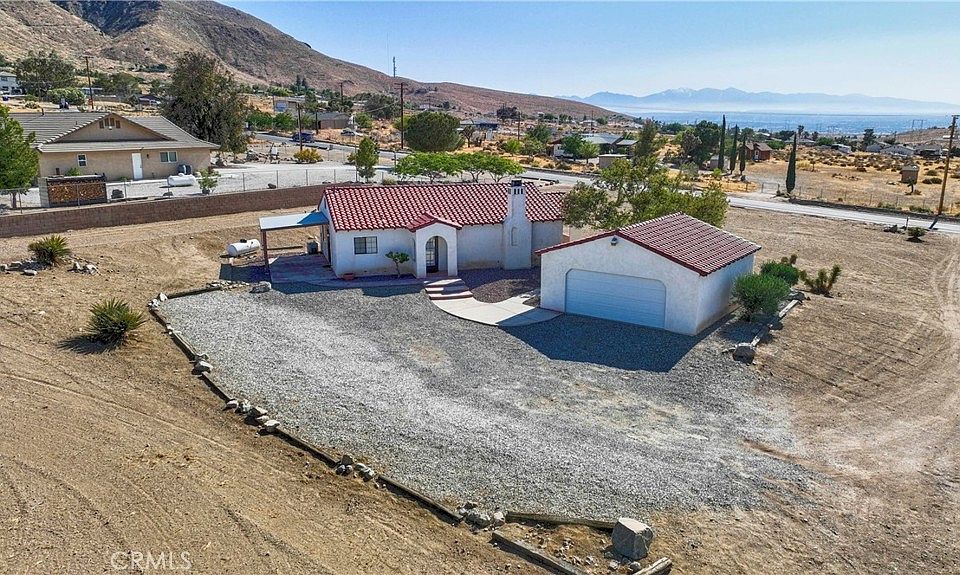 BEAUTIFUL CUSTOM BUILT HOME! Located in one of the most sought after locations in Apple Valley on an oversized 2.5 ACRE LOT! This beauty is 1,260 sq ft, with two generously sized bedrooms, one and a half bathrooms, a spacious great room, along with a formal dining, and cozy custom kitchen! As the Spanish inspired arches throughout the home greet you, you're welcomed into the formal dining room with custom bookshelves that line the wall, with an open concept to the great room! The great room has a cozy fireplace with custom tiles imported from Mexico, and arched windows opening up to your breathtaking Desert view! The great room also has a separate entry that opens up to your private patio! The kitchen is nothing less that magnificent, with custom tiles imported from Mexico, well kept shaker style WOOD CABINETS, and another entry point leading to your large covered patio! Boasting with 2 great sized bedrooms, the master includes ample storage and a private ensuite bathroom! The secondary half bath also has laundry hookups neatly tucked into the closet space creating additional storage and a clean feel! If the home wasn't enough, you have an additional OVERSIZED 2 car garage boasting at 576 SQ FT, with an abundance of shelves and storage! The home was custom built in 2000, and has been loved and cared for, for many years by the original owners! The home was built with thought of the future, and kept within a size that allows it to be considered a mother in law / ADU if someone where to want to build an additional dwelling on the property in the future! Seller is MOTIVATED and has priced to sell.