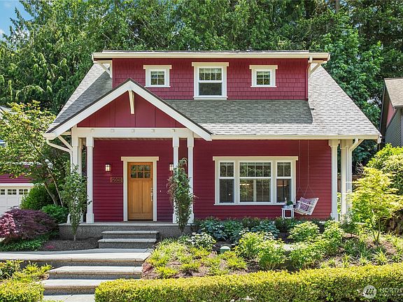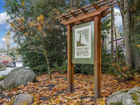 Desirable Bungalow Company designed Craftsman built by Jerry Reese sits on the quiet side of the loop in popular North Town Woods. A charming covered front porch overlooks newly custom-designed landscaping and makes a nice first impression. Inside, the open-concept main level has new paint and a freshly updated kitchen that flows nicely into the living spaces plus a family room or home office that can be closed off for privacy. Three bedrooms are upstairs, plus the desirable detached garage with an add'l 460 sf Guest Studio with a 3/4 bath and kitchenette (not included in sq footage) is perfect for home office or guests. Back yard and deck connect to open space. Newer roof and exterior paint. Close to town, ferry and all levels of schools.