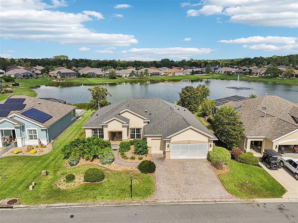 One or more photo(s) has been virtually staged. Welcome to this stunning pond-front home in the gated 55+ community of Spruce Creek Golf and Country Club, where comfort, style, and resort living come together. With 2 bedrooms, 2 bathrooms, and a private office across 1,870 square feet, this home is designed for both relaxation and entertaining. The property features a fully installed irrigation well, driveway pavers, and custom stained glass in the front entry French doors, creating an elegant and functional first impression. From the moment you step inside, natural light fills the open floor plan, highlighting the seamless connection between the living room and kitchen. The kitchen features stainless steel appliances, solid wood cabinets, a center island, a charming eat-in area, and a solar tube that brightens the space naturally, perfect for morning coffee with a view. The living room boasts two sets of expansive sliding glass doors that open to the enclosed Florida room, offering breathtaking pond views year-round. The primary suite is a true retreat with water views, a spacious walk-in closet with built-in shelving, and a spa-like en suite bath complete with dual sinks, a soaking tub, and a separate walk-in shower. Stability handrails are thoughtfully installed in the primary bathroom, including the toilet and shower, for added safety and comfort. Outside, you’ll find a two-car garage plus a golf cart garage for added convenience. Living in Spruce Creek means enjoying a lifestyle filled with amenities, including golf courses, a clubhouse restaurant, multiple pools, tennis and pickleball courts, and volleyball courts. All of this is just minutes from Veterans Park, local dining, and easy highway access. This home perfectly blends modern comfort with Florida charm, offering peaceful pond views, elegant finishes, and vibrant community living in one beautiful package. Mortgage savings may be available for buyers of this listing.