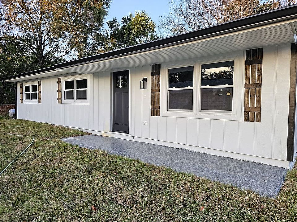 The outside of the home features NEW exterior lighting as well as NEW custom hand-crafted exterior shutters, stained to match the home perfectly. Gutters were also professionally installed and the driveway, caport, porch, and laundry room all have NEW epoxy flake flooring.