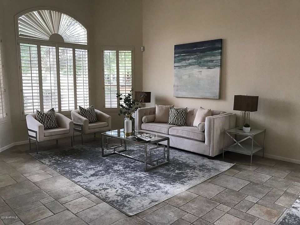 Just remodeled beautiful home in North Scottsdale with easy access to freeway and shopping. The home was just freshly painted and updated with new granite counter tops in the kitchen. The home includes a fantastic open floor plan connecting the living room, dining room, eat in kitchen and the family room. The home offers a spacious family room with a fireplace. The floor plan also offers beautiful views of a private park-like back yard and a sparkling pool. The sizeable living room comes with high vaulted ceilings and lots of windows. The good-sized master bedroom comes with over-sized tub and separate shower with a large walk-in closet. The lower floor is fully and beautifully tiled. The upper floor is covered with new luxury earth-tone carpet. Seller is related to the listing agent.