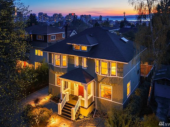 Exemplary 1906 Capitol Hill classic, masterfully renovated w/ respect for historic charm. Stunning period details: bannisters, hardwds, bright bay windows. Modern comforts abound. Oversized master w/ walk-in & sauna. Chic updated kitchen, 12-person dining. Bonus rm dwn, incredible 3rd story w/ sweeping Downtown & Olympic views. Pro landscaping, huge Trex entertaining deck, off-street parking, AC. Admirable, quiet street near revered Volunteer Park. Don't let this Seattle treasure slip away.
