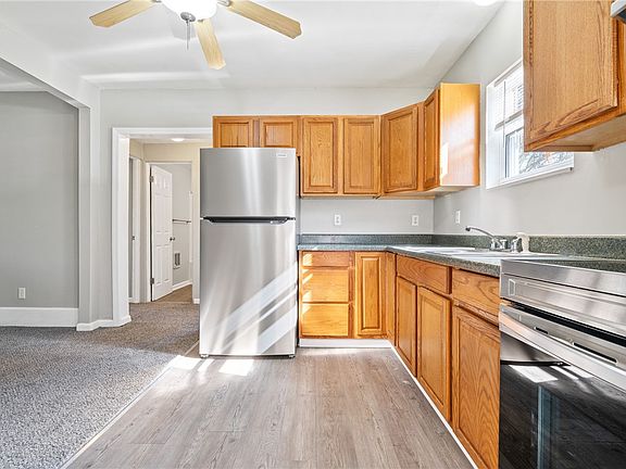 Whether you're just starting out, looking to downsize or anything in between, this charmer in Verona Hilltop may be just what you’re looking for! Two bedrooms plus an additional room that can be designated as an office, playroom or den. Freshly painted throughout in trendy grey. New carpeting in living space and new laminate flooring in kitchen. Nicely updated bath. Kitchen has abundant oak cabinets and stainless steel appliances. Great covered front porch ready for you to enjoy! 1st floor laundry. Nice backyard with small patio. 1-Year Home Warranty Included. Great investment opportunity.