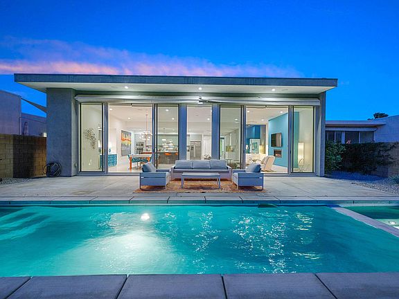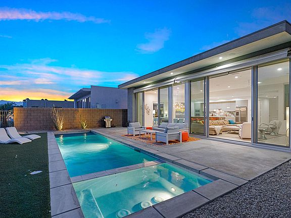 This sun-drenched modernist abode is perfectly situated to explore all that Palm Springs has to offer. The two guest bedrooms provide ample privacy from the master suite. Additionally, you'll find convenience in the nearby Escena dog parks or enjoy an unforgettable evening at the Golf Club Lounge & Grill.