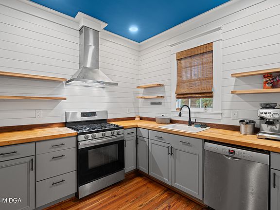 Charming, historic district bungalow with modern touches! Welcome to this beautifully updated 2-bedroom, 1-bath home located in the heart of the sought-after historic district. Step inside to discover stunning red oak hardwood floors flowing throughout, blending warmth and character with timeless style. The kitchen is a stand out feature, boasting eye catching shiplap accents, sleek butcher block countertops, and modern open shelving-perfect for both daily living and entertaining. Light-filled living spaces, tasteful updates, and preserved historic charm make this home truly special. Don't miss your chance to own a piece of history with all the comforts of today!