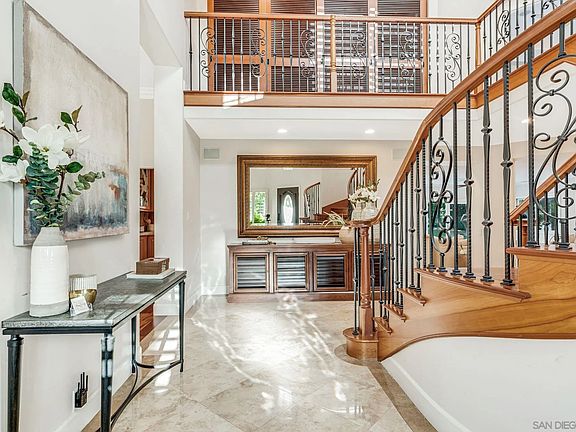 PRICE ADJUSTMENT! Welcome to 939 Calle Santa Cruz, where elegance meets spacious living! This stunning 5-bedroom, 3-bathroom home spans an impressive 4,739 square feet, offering pure bliss and endless possibilities. The gourmet kitchen, complete with a large island, invites culinary adventures and serves as the heart of the home. The traditional floor plan places the primary and secondary bedrooms upstairs, featuring spacious rooms and a separate gym/sauna off the primary suite. The primary retreat includes a cozy sitting area, a double-sided fireplace, a separate tub and shower, double vanities, and his & hers walk-in closets. Downstairs, you'll find an office, separate living, dining, and family rooms, as well as a fully equipped media/theatre room. Recent updates, including fresh flooring, sleek woodwork, and modern light fixtures, create a bright and airy ambiance perfect for entertaining. Step outside to the entertainer's dream backyard, complete with a pool, spa, and outdoor kitchen featuring a built-in BBQ and large island. The 1/2 acre lot also offers ample RV/Boat parking, pool solar, a pool room, and enough space for an ADU or granny flat. Embrace the unique surfer cowboy vibes of this Encinitas gem and make this home your ultimate retreat.