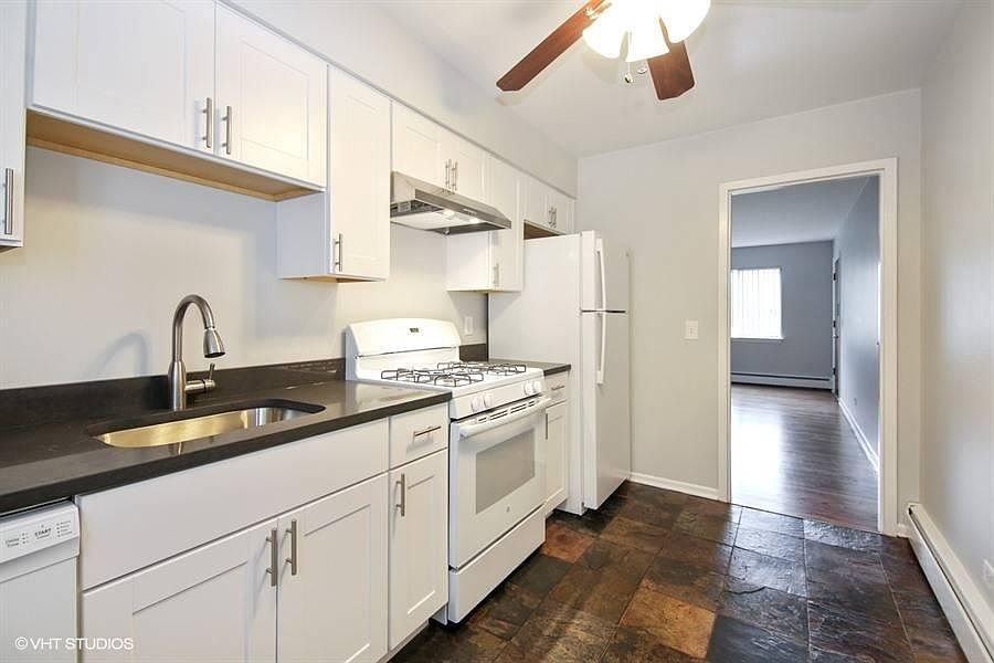Two Bedroom Apartment, Completely Remodeled, in a quiet location with beautiful hardwood floors, cabinets, modern appliances and granite counter-top. Lots of closets, including a double closet in the master bedroom and a hallway linen closet. Plus a 3' x 6' storage space in the basement. Across the street from the Deerfield Public Library, Holy Cross Church, Parks, Metra Train Station and Downtown Deerfield. Heat included in rent. Off-street parking, full-time maintenance and management staff. Photos may not be actual apartment. One year