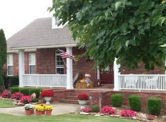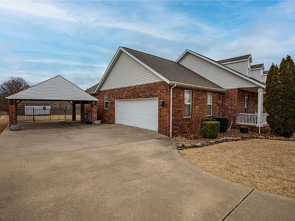 Cave Springs convenience with traditional charm! Love this wonderfully-kept 3 bed 2 bath home in the heart of Cave Springs. The large southern style covered porch on the front leads to a beautiful glass double-door entry. Inside, the living room is inviting with its cozy gas log fireplace and custom built-in glass door cabinet. To the left are full-light double doors leading to the dining room, but there's also a large eat-in kitchen, perfect for larger households. The kitchen has granite counters, stainless steel appliances, and beautiful custom hardwood cabinets. The split floor plan design has 2 large bedrooms and a bathroom on one side of the house and a large master suite tucked away on the other side. The master has multiple closets and a small office to one side. The master bath has a double vanity, large glass shower, and jetted tub. Out back, sit on the relaxing covered deck and look over the 2 3 acre lot with black steel fence. Lrg storage bldg. convenient carport AND 2 car garage! New roof 2019.