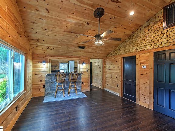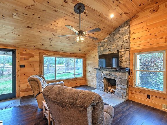 Now available! Incredibly updated stone bungalow has just hit the market. This property features a wonderful and private lot, ample large trees, and a beautifully finished cabin style one level home. As you enter the home, you are greeted by tongue and groove paneling, open concept living, and high vaulted ceilings and ample natural light. The master bedroom is located on the main floor and features a full bathroom. The second bedroom also features great space, and a full attached bathroom. The grounds of the property have been wonderfully updated with great outdoor living spaces and a huge fire pit. Please come schedule your showing today before this property is sold!
