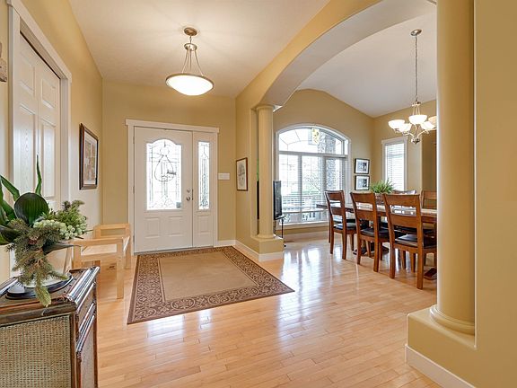 Located in College Woods, this fully finished home offers over 3,000 sq.ft. of living space with thoughtful upgrades throughout. The front veranda welcomes you & hardwood leads past formal dining room into the open concept kitchen with island & breakfast bar, granite counters, pantry, SS appliances, & breakfast nook overlooking the maintenance-free deck & sunny south-facing backyard. You will enjoy the natural light while sitting in the great room with gas fireplace. Enjoy the beautiful backyard view also from your primary bedroom with walk-in closet & 4-pc ensuite. Spacious second bedroom, & full bath, plus laundry complete the main floor. The lower level is perfect for entertaining: wet bar, family/TV room, games area with pool table, two additional bedrooms, & full bath. Enjoy 9 ft ceilings on both levels, abundance of natural light, A/C & in-floor heat, & U/G sprinklers, aggregate driveway. The fully finished double garage has a rubber floor. Quiet location close to trails, parks, & all amenities.