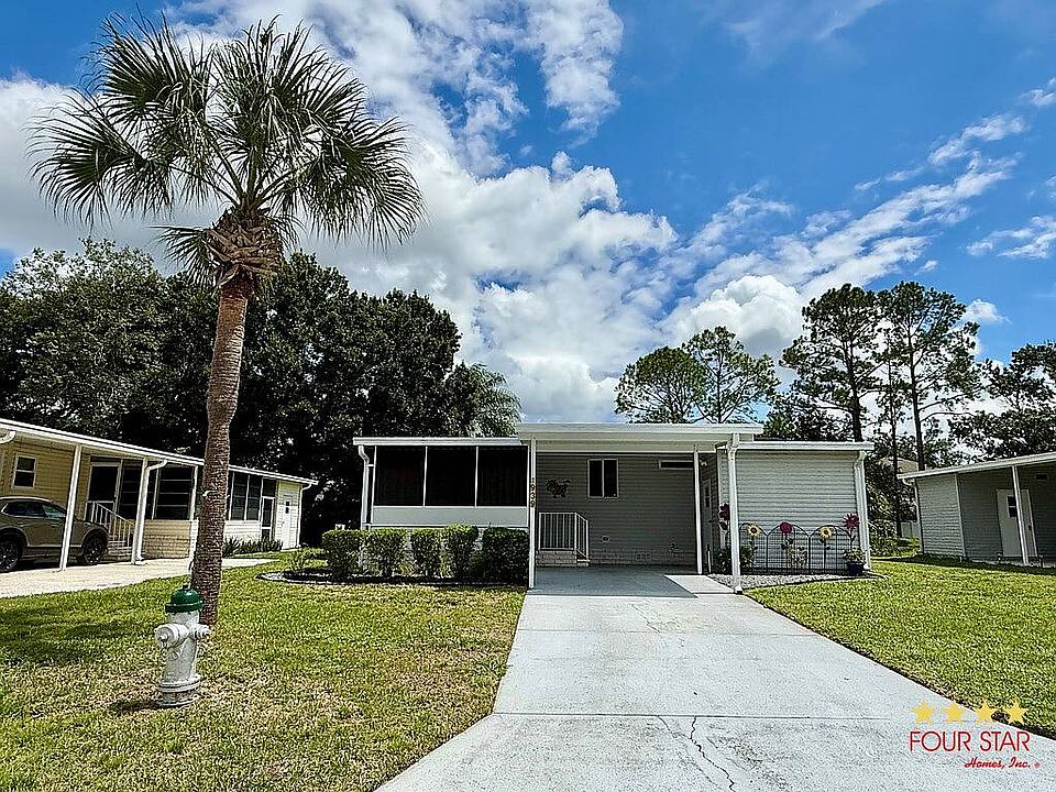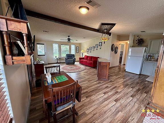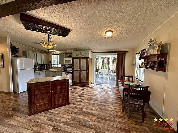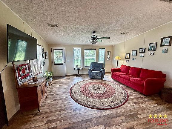 Step into this spotlessly clean, fully furnished manufactured home that blends farmhouse charm with modern convenience, located in the inviting 55 plus land lease community of Palm Valley. This thoughtfully maintained residence is move in ready and offers peace of mind with a brand new HVAC system installed in June 2025, complete replumbing in 2022, and a refrigerator purchased in 2023. The washer and dryer, included with the home, were purchased in 2021 and can remain indoors or be easily relocated to the storage room, providing extra closet space if desired. The kitchen is designed for both style and function, and the island is perfect for meal preparation. If additional seating is ever needed, it could easily be transformed into a breakfast bar with stools, creating a casual and welcoming dining space. The home features stylish farmhouse details throughout and offers comfort with desirable updates such as chair height toilets and a relaxing jetted tub. Every window, door, and the spacious screened porch is fitted with high-quality pet screen that is tear-resistant and puncture resistant. Palm Valley is known for its welcoming atmosphere and active lifestyle, where new residents are quickly embraced into the community like family. Whether you are enjoying your charming farmhouse-inspired home or the many activities the community has to offer, this property is a rare find that combines comfort, quality, and peace of mind.