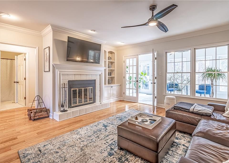 Book your tour for this charming Lenox Hill townhome in Buckhead! Beautiful hardwood floors and crown molding throughout the home, modern light fixtures, and lots of natural light flood this home with appeal. The welcoming dining room off the foyer features chair rail molding and a bay window with plantation shutters. Double doors open to the kitchen that showcase the white cabinets to the ceiling, granite countertops, breakfast counter, S-S appliances. The spacious family room is ideal for entertaining. The open space, wood burning fireplace, built-in bookcases and the wall of windows and the French doors opening into the light-filled sun porch makes this area the heart of the home. To connect with nature, just step out to the rear deck to enjoy the tranquil wooded area. The main level features an ensuite bedroom in addition to another bedroom with a full hallway bath for visitors to use. The sprawling terrace level truly sets this home apart with its bonus den and converted master suite. Enjoy a large master bedroom with recessed lighting, an abundance of closet space, a lovely ensuite bathroom with a seamless glass shower and French doors off the bedroom leading to the screened porch, complete with a hot tub! An unfinished area with tons of space is ideal for storage. The fenced backyard would be perfect for a garden or the kids or furry friends to play!