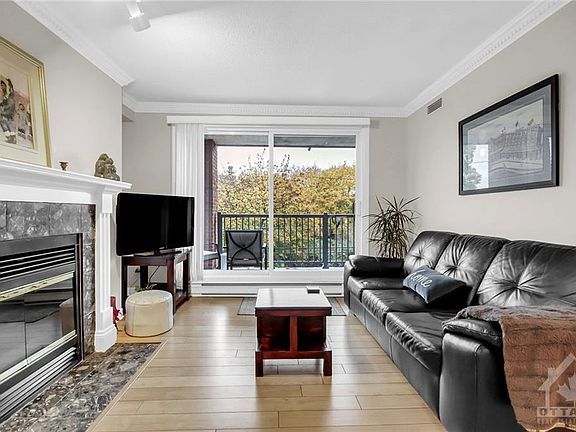 Move in ready corner 3 bedroom unit with tranquil views of the River Park. Well over 1200 square feet of nicely maintained living space w/hardwood floors or tiled floors throughout. Nice size vestibule w/mirrored closet doors & access to the laundry/storage leads to a dedicated space for a dining room. A renod kitchen provides loads of cupboard space, w/granite countertops & opens to living room which boasts a wood burning fireplace & access to the balcony w/beautiful views. The primary bedroom is oversized w/many windows & provides 2nd access to the balcony, dbl closets & ensuite bathroom. The 2nd bedroom has a murphy bed and can double as a home office/guest room. Third bedroom easily accommodates a Queen bed and adjoins the 2nd full bath. Underground parking space & storage locker included. Walking distance to the footbridge to Sandy Hill and to grocery store & Rideau Tennis Club. Quick possession possible. 24 hours irrevocable on all offers. Pet friendly. A nice find!