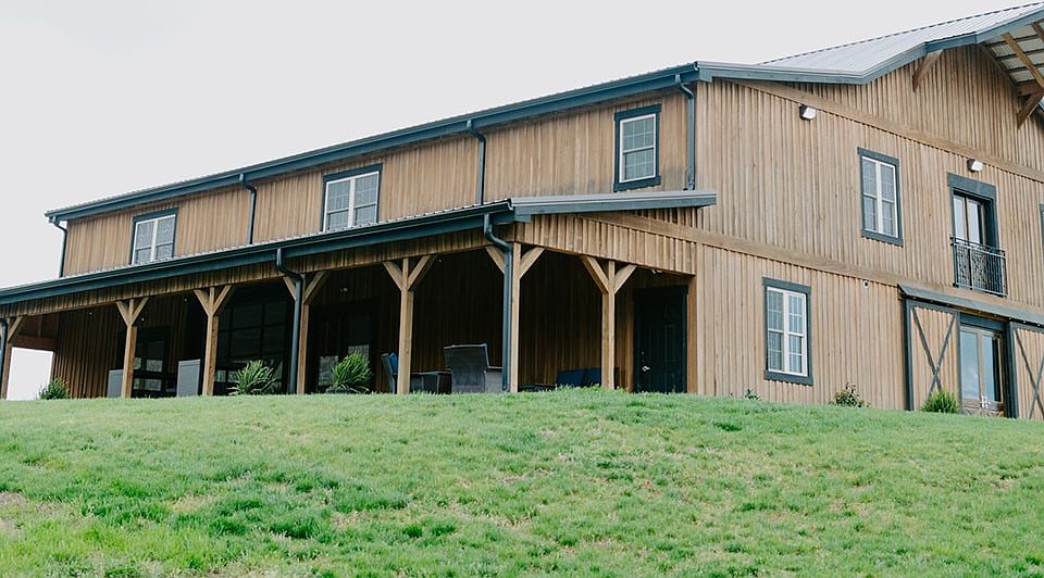 Complementing the home is a 5,280 sq ft event venue designed with weddings and special gatherings in mind. The downstairs level provides a large event space with a food prep area, storage, and two restrooms (mens stall and urinals, women's 2 stalls), while the upstairs includes a full bath, an office, an elegant bridal suite, and conference room. Additional structures include a 1,400 sq ft Groomsmen Barn, perfect for pre-event gatherings, and a 750 sq ft three-sided barn with outside bar offering versatile space for event use.