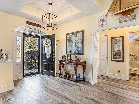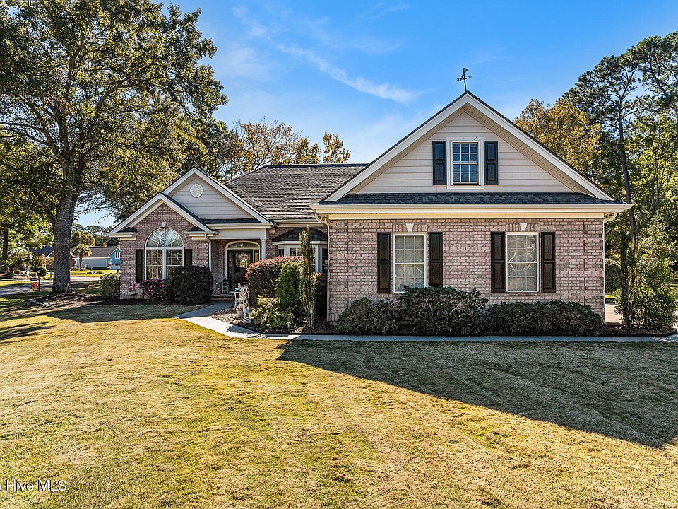 Live where every day feels like vacation! This custom, all brick home in Oyster Pointe at Sea Trail Plantation blends timeless craftsmanship with smart, move in ready updates that make this ideal for anyone who values comfort, convenience, community amenities, golf access, and close proximity to Sunset Beach. Luxury vinyl floors lead from the foyer through the formal dining room, into an open living area and cover most of the home. A two way fireplace connects the living room to the family room which is wrapped in windows and a door that leads to the patio. The heart of the home is a bright white kitchen designed for everyday ease and entertaining with granite countertops, abundant cabinetry, and stainless appliances including a gas stove. A breakfast bar and sunny breakfast area offer casual dining options, while a pantry keeps everything organized. Adjacent to the kitchen, a spacious Carolina Room features full windows and a dedicated mini split system with heat and air, creating a comfortable four season flex space for morning coffee or evening relaxation. The split floor plan gives the primary suite its own wing with porch access, double vanities, soaking tub, oversized walk in shower, and a walk in closet. Storage that truly sets it apart, the oversized garage includes a utility sink, extra depth for shelving, and fixed stairs leading to an expansive, easily accessible attic, ideal for storage. Big ticket items are already done: new roof in Oct 2025, new HVAC in 2023, water heater replaced in 2025, plus a water softener/filtration system added in 2022 and a hot tub for effortless unwinding. Sea Trail owners enjoy private beach parking on Sunset Beach, three golf courses with a driving range, two resident clubhouses, pools, fitness, tennis/pickleball, library, walking/biking paths, and a community garden. Minutes to the Sunset Beach bridge, fresh seafood, and everyday conveniences—this is the low maintenance, amenity rich coastal life you've been waiting for.