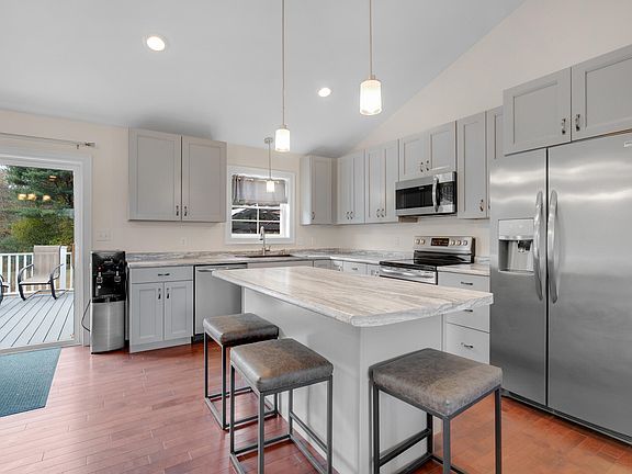 This is it! The ideal one-story home on 5 acres. From the moment you drive in the spacious, paved driveway, you notice the landscaped yard, covered farmers porch with composite decking, and attached two-car garage. Entering the home you will find high cathedral ceilings in the open concept living room, kitchen and dining area. Kitchen has 36'' high wood cabinets with center island and stainless steel appliances. Direct access from 24' x24' garage to house. Three bedrooms and two full bathrooms include spacious 15' x 15' +/- primary bedroom and en suite bathroom with large two-sink vanity, tub/shower, linen close, and two other bedroom/office spaces. Hardwood floors throughout whole house. Large, dry basement with dog house bulkhead and build-in workbench and shelving. Private flat, backyard setting with composite, open deck and stone paver deck with attached pergola perfect for relaxing barbecues. Built in 2018, this home has been well-kept and would be move-in ready! Only two minutes from Snell's Family Farm, and ten minutes from Saco Turnpike Exit. Open House on Saturday, October 18 from 12:30PM to 2:00PM.