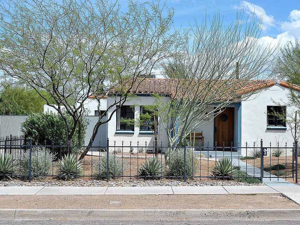This home exudes the classic charm and warmth of a 1949 Tucson bungalow yet provides the comforts and features desired for modern living. Original hardwood floors, doors and hardware blend with updated kitchen cabinetry, quartz countertops, and updated fixtures and finishes. Main house has two bedrooms, the master bedroom features a charming space that works perfectly as an office, den, sitting area. The mud adobe casita/studio has a private entrance and stylish bathroom. Private outdoor spaces with lush yet easy care landscape allows for indoor outdoor living. Minutes to downtown, Five Points and University of Arizona. Off street parking and great secure bike storage area.