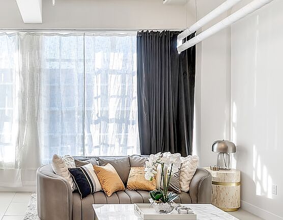 Step into cinematic downtown luxury at 939 S Broadway. This stunning 1-bedroom, 1-bath corner loft glows with light from both the south and west, filling the space with golden afternoon warmth and dramatic sunset views. Framed by ceiling-to-floor plush velvet curtains, the expansive living area is anchored by two grand statement chandeliers, while a three-tier crystal chandelier in the entryway sets an unforgettable tone the moment you arrive. Offered fully furnished, this home is a turnkey designer showcase perfect as a high-performing Airbnb investment or a sophisticated city retreat. Enjoy soaring ceilings, polished concrete floors, and timeless industrial character complemented by resort-style amenities including a rooftop pool and spa, fitness center, and 24-hour security. While the building itself does not include on-site parking, secure parking options are conveniently located directly across the street, making city living both luxurious and effortless. All just steps from DTLA's finest dining, shopping, and entertainment along the vibrant Broadway corridor.