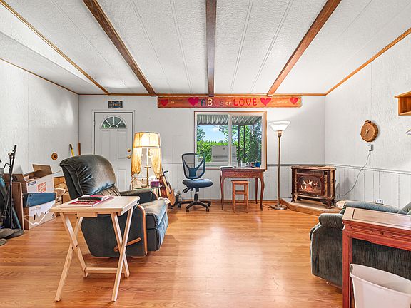 Enjoy this charming, manufactured home in Ashland that greets you with a nice flower garden out front and partial mountain views. This 1188 sg ft home has laminate flooring throughout, with plenty of windows making the house light and bright and a gas fireplace in the living room. The kitchen has white cabinets, a double sink, along with a side pantry for extra storage and a butcher block countertop that leads into the laundry room that has extra cabinets. The bedrooms are large. The master bath with a tiled step in shower, a new slider with a new patio deck that opens to the backyard where you can relax and enjoy a BBQ or gardening using TID Irrigation to water berries, apples, kiwis & grapes. Keep in mind when viewing the house, the owner is currently remodeling parts of the house including the second bathroom where he is replacing the bathtub, sink & vanity. The carport has a workshop area in the back part for all your home projects. Motivated Seller, give us a call today!