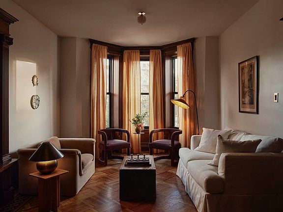 A rare 2500 square foot Parlor and 2nd floor upper duplex residence designed by Hans Lorei, offering a blend of restored historic detail and modern high-end finishes on a quiet, tree-lined block in Crown Heights. This expansive two-floor home features a private backyard, central air, and in-unit laundry, providing the space and comforts of a full townhouse with the convenience of a rental.