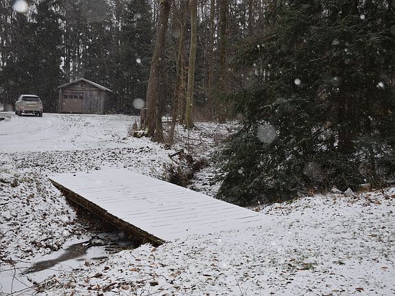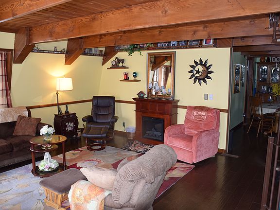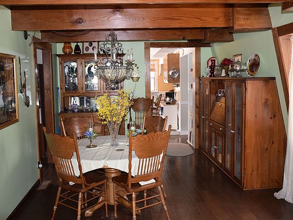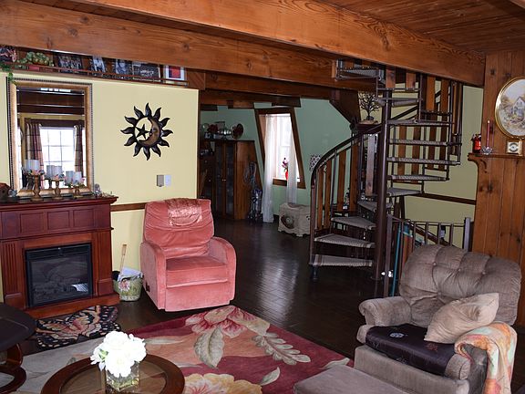 4 bedroom, 2 ½ bath character filled home on 5 ½ wooded acres. Living room ,dining room, eat in kitchen open to family room. Large master suite, walk in closet, full bath. Three more bedrooms, one with a walk in closet. Two car garage. First floor laundry. The laundry area has a hanging closet, a 5 ft. pantry, and a closet for cleaning supplies. Wood stove in unfinished basement with walk out. Dumb waiter: no more carrying groceries or laundry up and down stairs, just pop it in the dumb waiter, press a button and it arrives at the intended floor. New hard wood floors on first floor. Two spiral stairways span the three floors. The upstairs hall has a 5 ft linen closet and a closet for extras. 200A Electrical Service LIVING ROOM 15’ 8” X15’ BEDR 10’6” X10’ DINING 11’11” X15’ 6” BEDR 13’7” X 9 KITCHEN 20’ X 10’ 10” BEDR 15’6” X 12’7 FAMILY ROOM 12’7” X11’6” MASTER 20’ X 15’6”