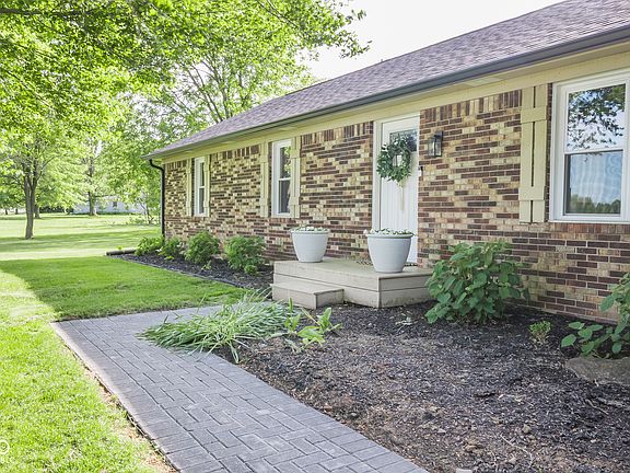 Welcome to this beautifully updated 3-bedroom, 2-bath brick ranch home nestled on over a half-acre lot. This country cutie combines modern upgrades with small-town charm. Step inside to find a freshly painted interior and all-new flooring throughout the common areas, providing a clean and contemporary feel. The open layout is perfect for both daily living and entertaining. A beautiful brick fireplace is the focal point of the family room. The bright and sunny dining room could also be used as a separate living room or an office. Each bedroom has been thoughtfully upgraded with new overhead lighting and ceiling fans for year-round comfort. The show-stopping galley kitchen and living spaces flow effortlessly to the outdoors, where you'll enjoy a brand-new patio overlooking a fully fenced backyard-ideal for kids, pets, or simply relaxing in privacy. Gardeners will love the newly added garden boxes, and the storage shed offers plenty of room for tools and outdoor gear. Additional updates include new insulation in the attic, helping to improve energy efficiency and comfort throughout the seasons. Roof, windows and doors are only two years old. This move-in ready home offers modern features, ample space, and is conveniently located minutes away from I-74. Don't miss your chance to call this one home!