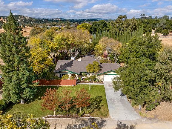 Embrace the allure of this charming 2,600 sqft (est.) single-level home with a 600 sqft guest house and horse barn, nestled on two acres of usable land! This property offers a seamless blend of comfort and style, featuring 3 bedrooms and 2 bathrooms, including a spacious owner's suite with office space, a bonus living room, and an attached 2-car garage. Step outside to revel in the expansive grounds, boasting lush grassy lawns, beautiful mature trees, fountains, raised garden beds, fruit trees, and splendid views of the surrounding hills. The outdoor BBQ area, gas-plumbed torches, fire pit, and enchanting landscaping invite memorable gatherings under the stars, surrounded by the gentle whispers of nature and breathtaking hill views.