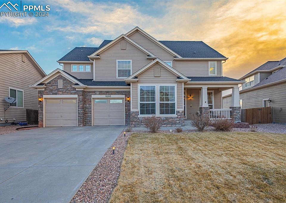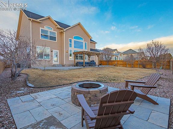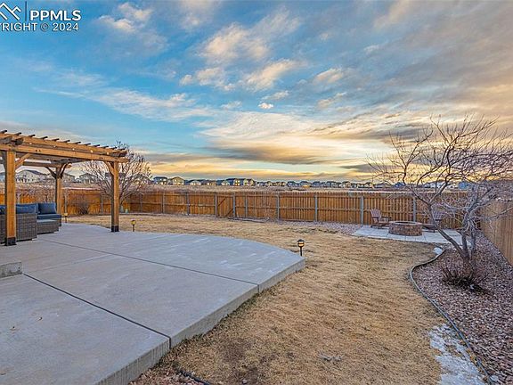 Welcome to 9393 St. George Rd, Peyton, CO 80831 – where picturesque landscapes meet modern luxury living! Join us on a virtual tour of this stunning property near Antlers Creek Golfcourse in Peyton, Colorado. This meticulously crafted home boasts 4 bedrooms, 3.5 bathrooms, 3 car tandem garage (extra deep) and 4,056 square feet of exquisite living space. From the moment you step inside, you'll be greeted by an abundance of natural light, high ceilings, and elegant finishes throughout. The Woodmen Hills Metro District offers a plethora of modern day amenities and features for it's residents. Imagine yourself entertaining guests in the spacious gourmet kitchen equipped with top-of-the-line appliances and new quartz countertops. Retreat to the luxurious primary suite featuring a spa-like ensuite bathroom and walk-in closet. Sit in bed in your private sanctuary overlooking Antlers Creek Reservoir and the birds soaring outside your windows. Step outside to discover your own private oasis, complete with a large concrete patio, pergola, fire pit, and pre-wiring for a hot tub. With breathtaking views of the surrounding mountains and sprawling greenery, this property offers the perfect blend of serenity and sophistication. Conveniently located near Antler's Creek Golf Course and Meridian Ranch, this home provides easy access to everything you need while still maintaining a peaceful atmosphere. Don't miss the opportunity to make 9393 St. George Rd your forever home. Schedule your private tour today and experience the epitome of Colorado living!