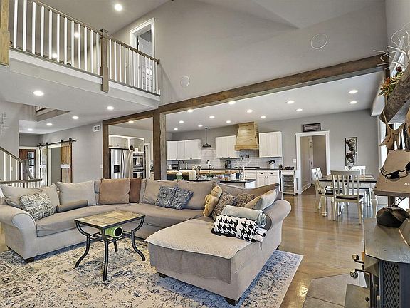 Stunning 6-Bedroom Home in Desirable Woodhaven Meadows! Welcome to this spacious and beautifully designed home located in the sought-after Woodhaven Meadows subdivision with over 5.5k SQ FT! Offering 6 bedrooms and 5.5 bathrooms, and 3.5 garage spaces- this property is perfect for families who love space, comfort, and modern amenities. Fully finished basement with a luxurious polished-poured concrete wet bar, refrigerator, and dishwasher.Rec room, movie theater area with projection screen, whole-home entertainment!Outdoor Living! 1.5 acre professionally landscaped yard with a horseshoe driveway.This home combines thoughtful design, luxury finishes, and family-friendly functionality in one incredible package!