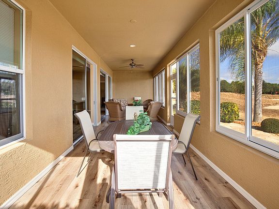 Johnstown Model 3+den/2/3 with extended garage. This home is located on the golf course with direct views of the tee boxes on hole #3 and is a very private setting. It is unheard of to get this much home on the golf course for this price. Home has 42'' cherry cabinets, tile floors on diagonal and carpet in the bedrooms, window treatments, cabinets in laundry area, fans and lighting. The lanai is enclosed with vinyl flooring and fans for year round enjoyment. Patio in rear with additional landscaping. The exterior is freshly painted, garage and front door have screens, power surge for the whole house, and keyless entry for the garage door. This is a great home and ready for new homeowners, take a good long look prior to purchasing a home if you are looking for exceptional value.