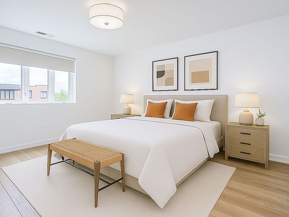Brand new construction condo-quality rental unit available now for move-in at "The James" at The Landings, a luxury, new construction condo development located in Des Plaines. Welcome to "The Element" floorplan, a two bedroom, two bathroom residence at The James. Boasting wide-plank premium flooring throughout, this home exudes a sense of warmth and sophistication. The kitchen shines with updated slim shaker cabinet doors, brass hardware, and designer lighting, complemented by a stainless steel appliance package and sleek Kohler faucets and finishes. The open concept flows seamlessly into the living space, creating a welcoming environment for relaxation and entertaining. The bathrooms are showstoppers, featuring gorgeous tiled showers that combine style and functionality for a spa-like experience. Premium Kohler fixtures elevate these spaces to true luxury. With an in-unit washer and dryer, this home blends convenience and style effortlessly. Enjoy the perfect blend of design and comfort in this beautifully updated condo available for rent now.