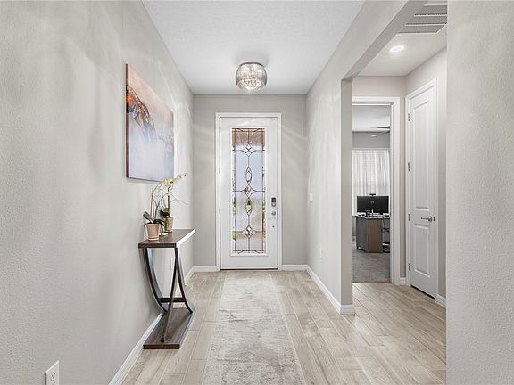 Welcome to your private retreat in the highly sought-after Epperson Lagoon Community, the first crystalline lagoon community in the United States. This impressive two-story residence offers 4,210 square feet of thoughtfully designed living space, blending modern elegance, comfort, and a lifestyle that feels like a permanent vacation. Step inside to soaring ceilings, abundant natural light, and an open layout that flows effortlessly from room to room. The gourmet kitchen is a centerpiece with stainless steel appliances, quartz countertops, and a sleek central island overlooking the bright gathering room with expansive pool views. The first-floor owner’s suite is a spacious retreat with large windows framing the pool and a spa-inspired bathroom designed for relaxation. Two additional bedrooms, a versatile flex room, and two more full baths complete the downstairs living areas. Upstairs, you’ll discover two additional bedrooms, a full bath, a huge loft, and a media room that offer endless possibilities for entertainment, family living, or a dedicated work-from-home setup. The home’s flooring enhances both style and functionality, with wood-look tile throughout the main floor living areas and plush carpeting in the loft, media room, and bedrooms for comfort. The outdoor living space is built for enjoyment year-round. A heated pool and spa take center stage, complemented by a covered lanai and a complete outdoor kitchen that makes entertaining effortless. The fully fenced backyard provides privacy and space for both relaxation and recreation. Additional features elevate the home’s convenience and value, blinds, designer lighting, a Rainbird irrigation system, and a three-car garage with overhead storage solutions. Wired speakers throughout the home make it easy to enjoy music in every living space. Epperson Ranch offers a truly unique lifestyle with its seven-acre crystal lagoon, unlimited household access, and annual guest passes. The community also includes Eagle’s Nest Park, Elam Park, a dog park, golf cart paths, and family-friendly events. High-speed internet and cable are included in the HOA, making daily living seamless and connected. The location offers the best of Wesley Chapel living, with top-rated schools, shopping at The Shops at Wiregrass and Tampa Premium Outlets, an array of dining options, and convenient access to major highways for easy commutes across the Tampa Bay area. This home is more than just a place to live—it is an opportunity to enjoy resort-style amenities and everyday comfort in one of Florida’s most desirable communities. Schedule your private showing today and see why Epperson Lagoon living is truly one-of-a-kind.