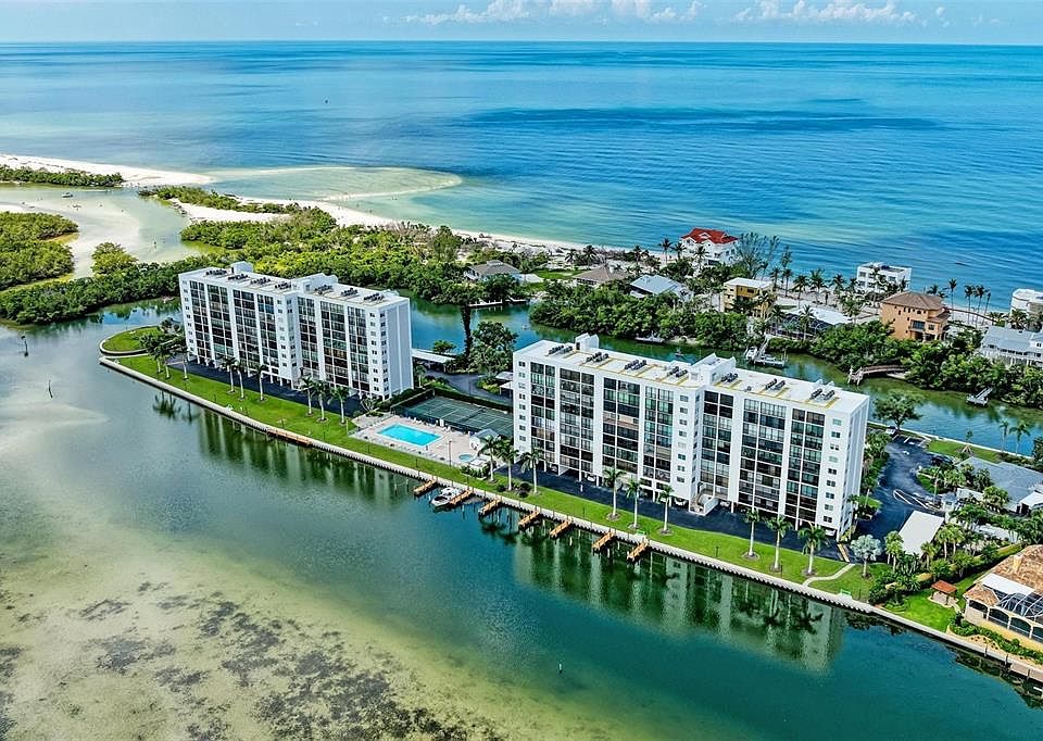 Here’s is your chance to live on the SOUTHERNMOST TIP OF SIESTA KEY and enjoy STUNNING SUNRISES & SUNSETS all year long. In fact, this is the CLOSEST CONDO to MIDNIGHT PASS and LOWEST PRICED 2-bedroom unit in the entire complex! This one-of-a-kind gated community encompasses over 5+ acres of PRIME WATERFRONT real estate and is loaded with amenities including tennis, pickleball, fitness center, heated lap pool, spa, dry sauna, kayak launch, clubhouse and more. Boat docks are also available for a small fee on a first come first serve basis. Rather go to the beach? No problem…Turtle Beach access is just about a half-mile away. And let’s not forget, just a few miles up the road are all the amazing restaurants and shops of Siesta Village. The first thing you’ll notice when you enter this turnkey-furnished, 2bed/2bath condo, is how the living area leads right out to an expansive 30-foot lanai overlooking Little Sarasota Bay and the Jim Neville Nature Preserve…a perfect spot for entertaining or just sitting back and enjoying the view and the wildlife. The primary bedroom also has access to the lanai and features an ensuite bathroom, finished closets, and of course, spectacular sunrise views. Engineered hardwood floors throughout give the home a cozy, beachy feel. Unlike other condos in the area, a washer/dryer is conveniently located within the unit. Recent updates include 5 new ceiling fans, new blinds, new range, newer dishwasher, and new furniture in the dining room and living room. AC was replaced in 2019. There is also additional storage space on the ground floor for all your beach and boating gear. Don’t miss out on your chance to own a piece of paradise! Schedule your showing today! Before you know it, you could be floating around the crystal blue waters of Midnight Pass and enjoying STUNNING SUNRISES & SUNSETS right from your own condo.