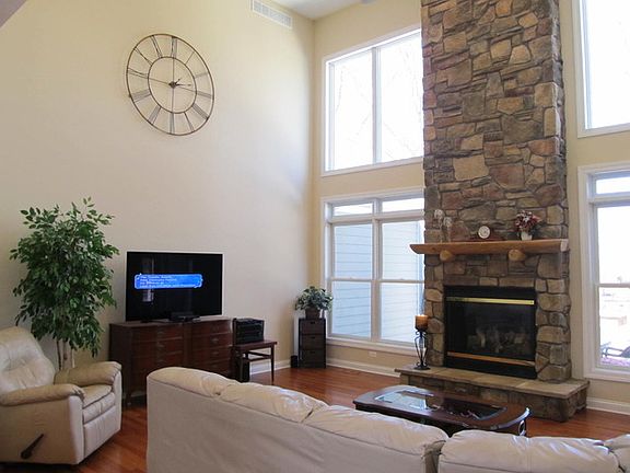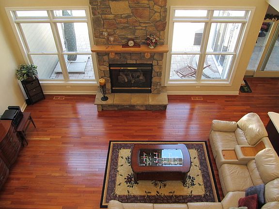 1.53 WOODED ACRES WITH 2 BRICK PAVER PATIOS & CUSTOM GRANITE TOP BAR & GRILL! HardiPlank exterior siding w/ stone accents. Kitchen showcases cherry cabinetry & wet-bar. Great Room boasts 2-story stone fireplace. Brazilian hardwood floors! First floor Master presents whirlpool & multi-head shower system. Heated 3-Season Room, lookout basement w/2nd stone fireplace & 29'x14' bonus room w/ 1/2 bath above garage!