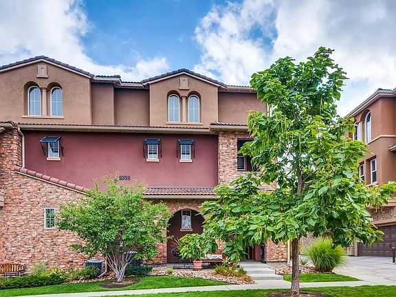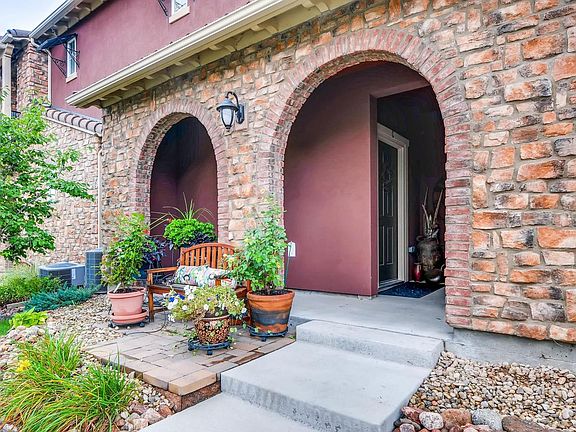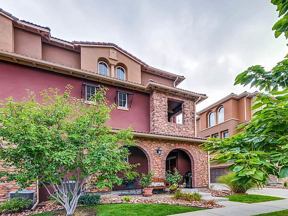 Field stone and brick grace the exteriors. Pretty shutters enhance the window panes. Flowers in blue and teal pots dot porches and balconies. It is magical. Windows which bring light to every corner and a luxurious master suite with it's own private and separate living area. The owners bought this home and purchased over 45k in extra features. Autumn Harvest slab granite, stone counters, english stained maple cabinets, iron & wood staircases ,wood & tiled floors and stainless appliances will wow you. Updated lighting, ceiling fans (even on the patio), a gas fireplace and the architectural nooks in the dining room and second bedroom add interesting flair. Although you may not realize it the oversized 2 car garage currently can house 2 SUV's, a motorcycle and additional storage. Walk the trails, swim in the community pool an hot tub, enjoy social activities at the Tresana Piazza. It is an easy walk to shopping, grocery, church and school. Sellers are Colorado Licensed Realtors.