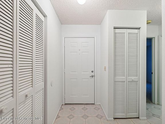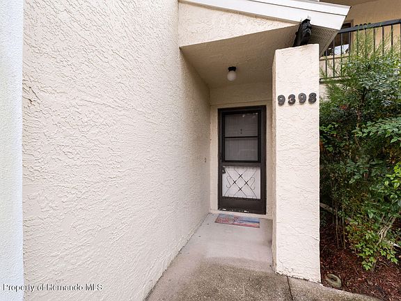 Welcome to this charming ground-level condo, offering a blend of comfort and convenience. Step inside to a welcoming foyer with a spacious closet, leading into an open living room featuring parquet flooring and two sets of sliding glass doors that open to a serene, screened-in Florida room. The living space offers versatility, with room for a dining area, a card table, or a cozy nook for your hobbies. The eat-in kitchen boasts many appliances, including a stainless steel refrigerator, a microwave, dishwasher, and stove. A pantry closet provides additional storage, while a window over the sink offers a perfect spot to display hanging plants. The generous kitchen space can easily accommodate a dining table or breakfast nook. The carpeted primary bedroom provides a tranquil retreat, complete with sliding glass doors to the Florida room, a walk-in closet, and an ensuite bathroom with a step-in shower. An inside laundry room, equipped with a stainless steel washer and dryer set, adds to the home's convenience. Enjoy peaceful mornings or relaxing evenings in the rear screened-in Florida room, perfect for taking in the fresh air. This condo combines functionality and style, creating a space you'll love to call home. The community of The Heather features a clubhouse, fitness center, golf course, and pool. It's located just 4 miles from the iconic Weeki Wachee Springs Park, which is home to the world-famous live mermaid shows, a crystal-clear spring perfect for kayaking or paddle-boarding, and a thrilling water park. Don't miss this opportunity—schedule your showing today!
