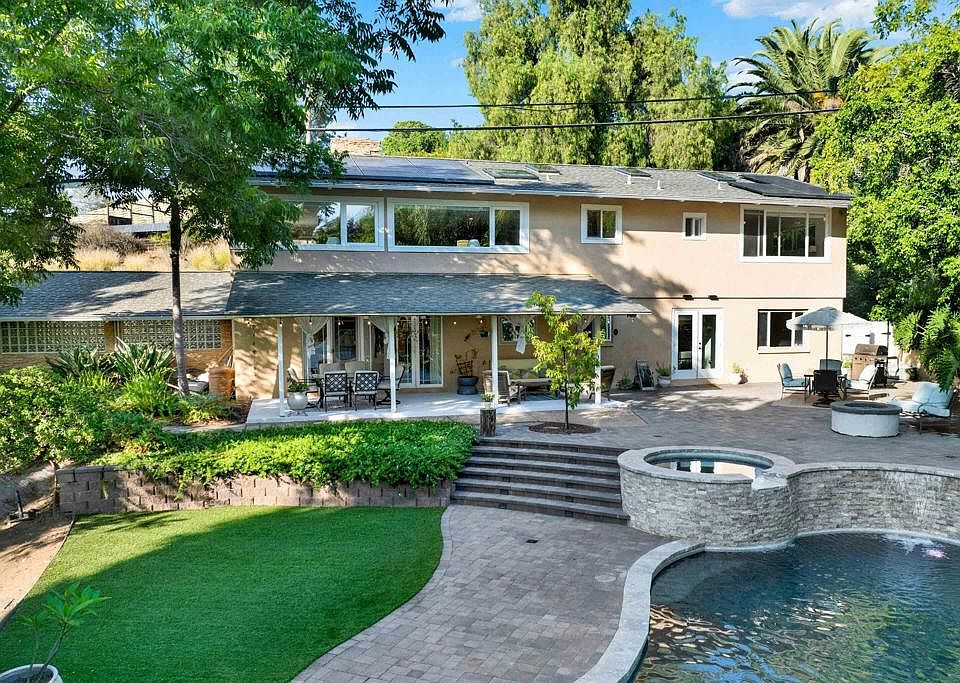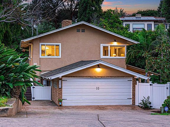 Perched in the hills of Mt. Helix with stunning mountain and sunset views, this home offers the perfect blend of luxury, comfort, privacy, and flexibility. About 750 sq ft of this 3,348 sq ft home can be sectioned off as a junior ADU or Airbnb rental with private outdoor entrance. This home features a sprawling amount of indoor and outdoor space to peacefully enjoy. Main level features luxury kitchen complete with Italian Calacatta marble countertops, stainless steel appliances, chef's island, entertainer's dream double ovens and gas range, and 48" built-in fridge. The cozy 3-sided stacked stone fireplace is a showstopper, wrapping around from the kitchen to the living room where you will enjoy gorgeous westerly sunset views. The main level features a primary bedroom with en-suite bathroom and a large walk-in closet, as well as 2 additional bedrooms and another full bath. Downstairs has its own living room and kitchenette, plus 2 more bedrooms and a full bath which makes it easy for multigenerational living, or generate rental income with the junior ADU. In addition to the attached 2-car garage, there is a laundry/utility room perfect for a home gym, storage, or office. Built in 2021, the luxury heated saltwater pool and spa features 2 waterfall spillovers, baja step with mother of pearl glass tile, luna marble coping, and color changing app-controlled lights. The backyard is your own private paradise with fruit trees, palm trees, lush landscaping and 2 grassy areas to play or picnic. This home is incredibly private, yet close to shopping, freeways, and only 15 minutes from downtown San Diego. Walk to farmers markets and dining in quaint La Mesa Village. Award-winning Murdock Elementary boundaries. 22-panel Tesla solar PPA. Check out the 3D virtual tour and schedule a showing to see it for yourself!