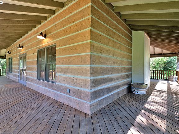 Tucked away at the end of the road, this custom-built home offers the perfect blend of rustic character and modern comfort. Hand-hewn square log siding, custom doors and cabinetry, and a spacious wraparound covered deck showcase the home's unique craftsmanship. Enjoy radiant floor heating, on-demand hot water, and an open-concept layout with two bedrooms on the main level and a spacious primary suite with bonus room upstairs.Set on 5 acres with river frontage, the property includes a fenced yard, chicken coop, small greenhouse, raised garden beds, woodshed, and an outbuilding. Just minutes from the Marcola post office, country store, and local dining—with scenic hiking trails nearby.Come experience this one-of-a-kind retreat!