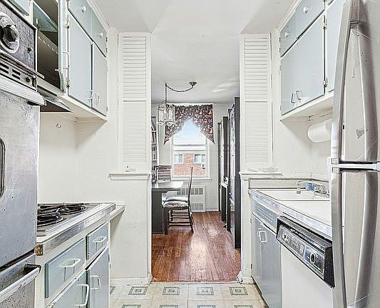 Best price best value! This bright and airy corner co-op apartment offers a spacious layout with large windows throughout, and a private balcony great 4 relaxing under the open sky. The unit features two bedrooms-a comfortable guest room and a generous master suite. The expansive living room provides versatile space, additional space for a library nook or a cozy galaxy-themed area. Elegant hardwood floors run throughout the apartment, complemented by ample closet space for all your storage needs. The apartment needs renovation, but still the price is best in this market. Maintenance includes water, heating, and cooking gas for added convenience. The building is located in the heart of Queens. This co-op is just 1 block from Queens Center Mall and a short walk to Rego Park Mall. You'll find an abundance of restaurants, grocery stores, pharmacies, markets, delis, and libraries nearby. Public transportation is a breeze, with the R & M subway station just three blocks away and multiple bus lines all close by. The building features a newly renovated hallway, an on-site laundry room, and Verizon Fios availability. A truly wonderful place to call home in a prime, ultra-convenient location!