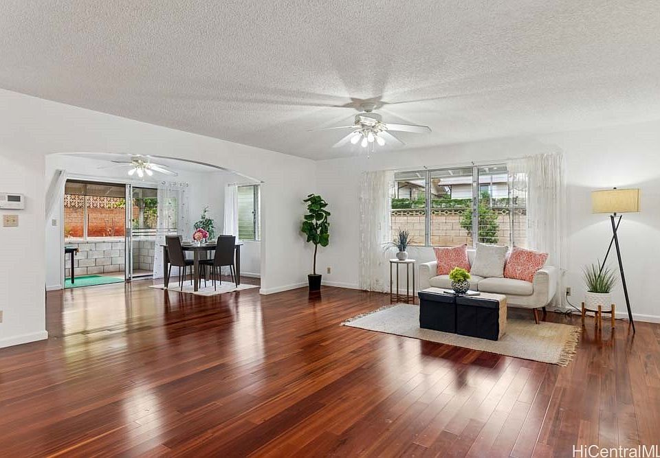 Feel right at home in this Mililani gem! Just a couple blocks away from the Mililani Marketplace and local businesses bringing convenience to this single-level residence of 3-bedroom, 2-bath on a spacious corner lot. This home welcomes you to vaulted ceiling and engineered hardwood floors, giving it an open feel. The kitchen offers an abundance of cabinet space and features stainless steel appliances with beautiful granite countertops in both the kitchen and bathrooms. The roomy primary bedroom is your own peaceful retreat and sanctury. Fresh interior paint, and brand-new carpet installed. Plus, PV panels help keep those electric bills low — a great bonus for island living. The floor plan is set up for weekend gatherings, pau hana get-togethers, or simply enjoying time with ‘ohana. Add your own personal touch to the yard and make this special home truly yours! Come visit 1st open house Sunday 11/16 2pm-5pm.