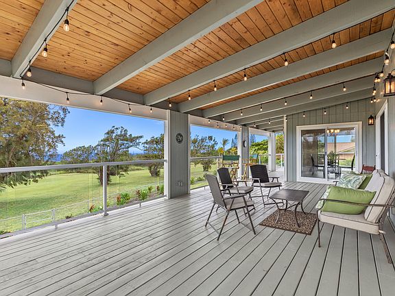 Outside, you’ll find a lush landscape with a variety of fruit trees including orange, banana, papaya, and more. Decorative plants abound including Ti and Hibiscus, while a kitchen garden is currently planted with fresh herbs and vegetables.