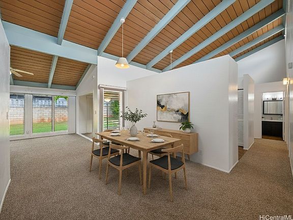 This 3-bedroom, 2-bath single-level home offers comfort and space. The open layout features high ceilings in the kitchen and dining area, creating an inviting atmosphere perfect for gatherings. Enjoy fresh interior paint, a 2-car carport with additional driveway parking, and a private backyard ideal for entertaining or relaxing outdoors. As part of the Mililani Town Association, residents have access to 7 recreation centers, pools, parks, sports courts, and scenic walking paths. Conveniently located near shopping, schools, and neighborhood parks. *Some photos have been virtually enhanced with staging. First Open House Sunday, November 16th, 2-5 pm.