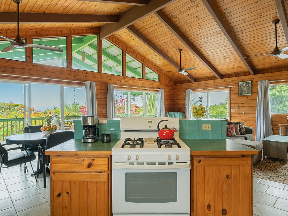 Discover a charming home in the heart of Naalehu, offering a serene retreat in Kau’s tranquil, rural setting. This well-maintained property boasts a versatile, spacious layout with abundant natural light, perfect for comfortable island living. The convenient downstairs living space is equipped with a full kitchen and bathroom, ideal for everyday functionality or guest accommodations. Upstairs, the thoughtfully designed layout includes another full kitchen and bathroom, complemented by an expansive lanai that invites relaxation and showcases the lush surroundings and peek-a-boo ocean views. Perfect for enjoying Kau’s peaceful ambiance, this home blends practicality with comfort, making it an excellent choice for those seeking a primary residence or a vacation retreat. With easy access to local amenities, this property captures the essence of Hawaii’s Big Island lifestyle, offering a unique opportunity to embrace the serenity and charm of Kau in a home designed for versatility, ease, and privacy.