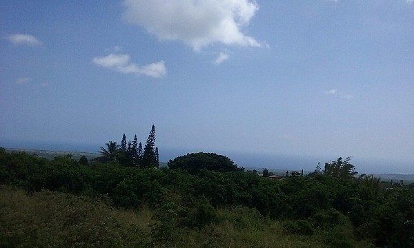 This property is close to Wakea Ave (only 8 lots in) on the mauka side of the roadway. Slopes up from road and has an oceanview. I cut a little pathway up inside and I believe the lot was once cleared but is overgrown at this time. I took these pics from the telephone pole across the street at about the same level the high spot is on the back of the property. Good View! Water meter is paid in full but at this time is not installed. Electric power is SSPP Unit #20 at a cost of $1,767.00 to hook up. Come South and take a L oo K! A Big Island Mahalo!