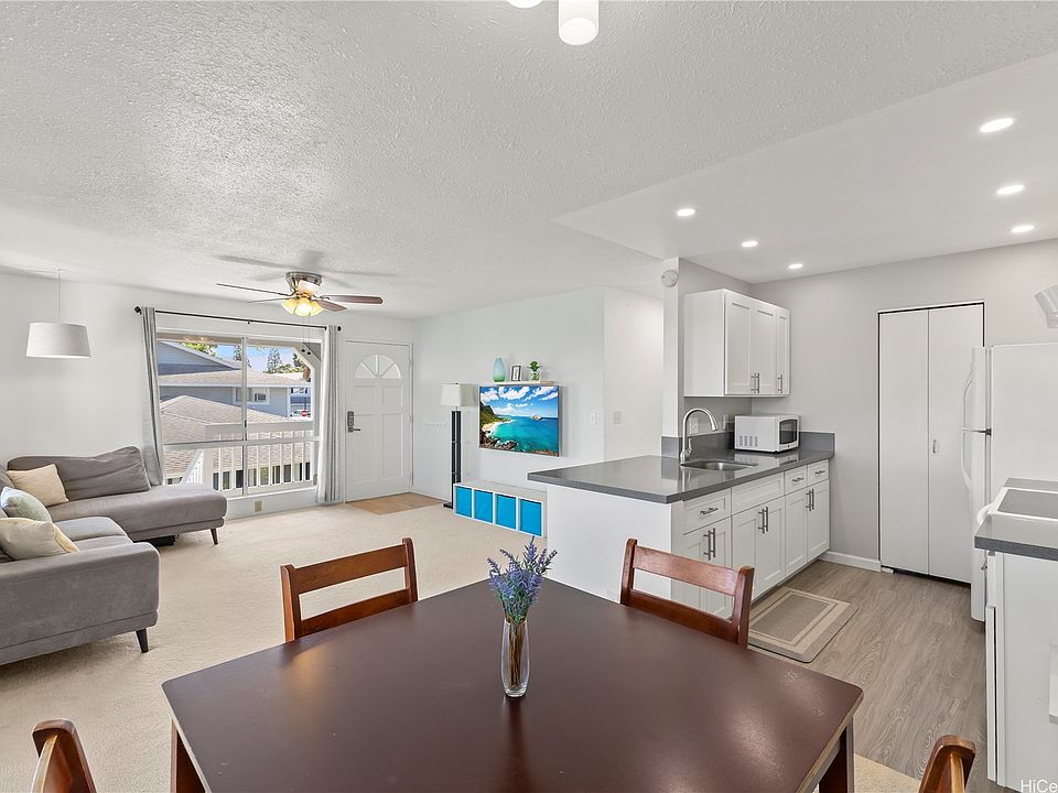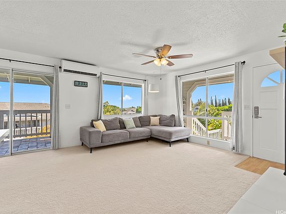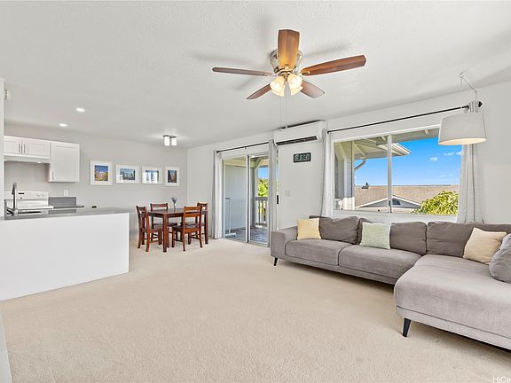 Desirable corner 2-bedroom 2-bath residence with partial ocean views in The Fairway Village at Waikele. This spacious unit of over 850 interior square feet and a 90+ square foot covered lanai has 2 assigned parking stalls. Features an updated kitchen with recessed lighting, quartz counter tops, hardwood cabinetry, and luxury vinyl flooring. The two baths provide modern tile surrounds, updated vanities, luxury vinyl flooring, lighting and new fixtures. A split AC in the living room and window ACs in the bedrooms will help you stay cool in the summer months. Convenient storage in the kitchen pantry closet and on your lanai. This pet-friendly and well-managed community has ample guest parking, a car wash, and access to the recreation center for gatherings and parties. Minutes to the Waikele Golf Course, Patsy Mink Community Park, Waikele Premium Outlets, Costco, Starbucks, Safeway, Foodland, Lowe's, and many other shops and restaurants.